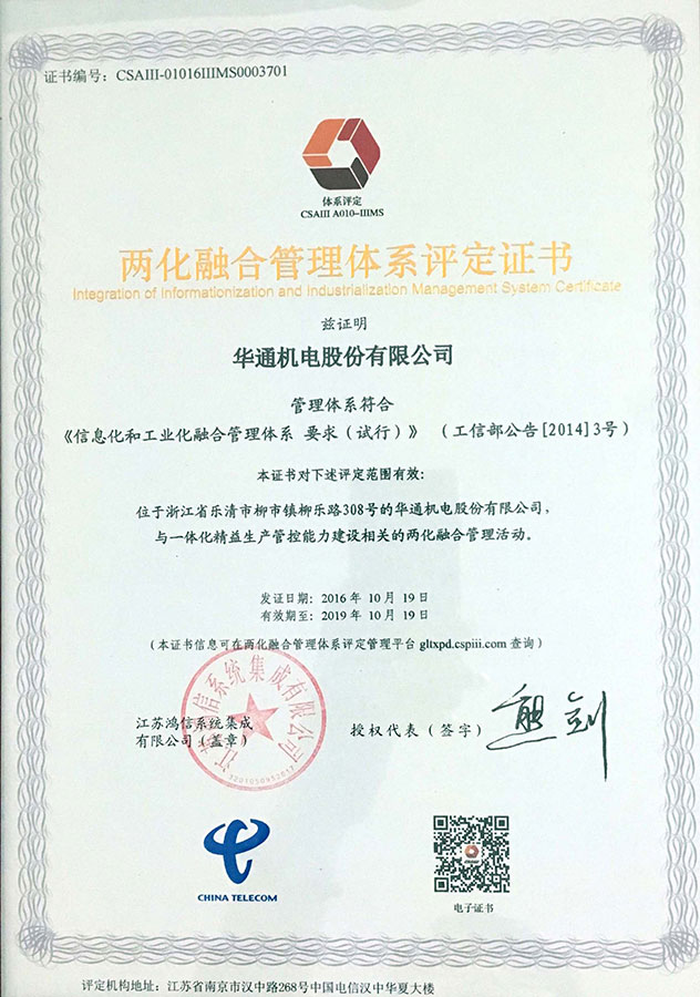 兩化融合管理體系評定證書
