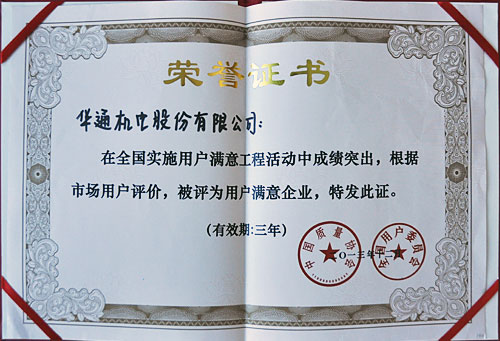 全國用戶滿意企業(yè)證書