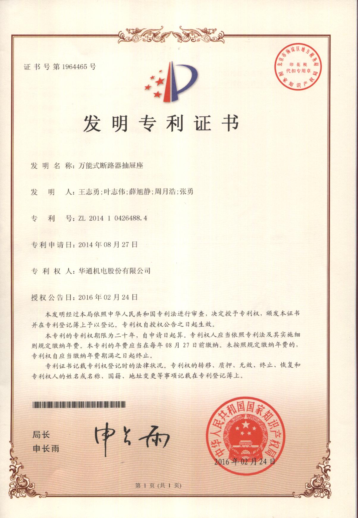 發(fā)明專利:萬能式斷路器抽屜座