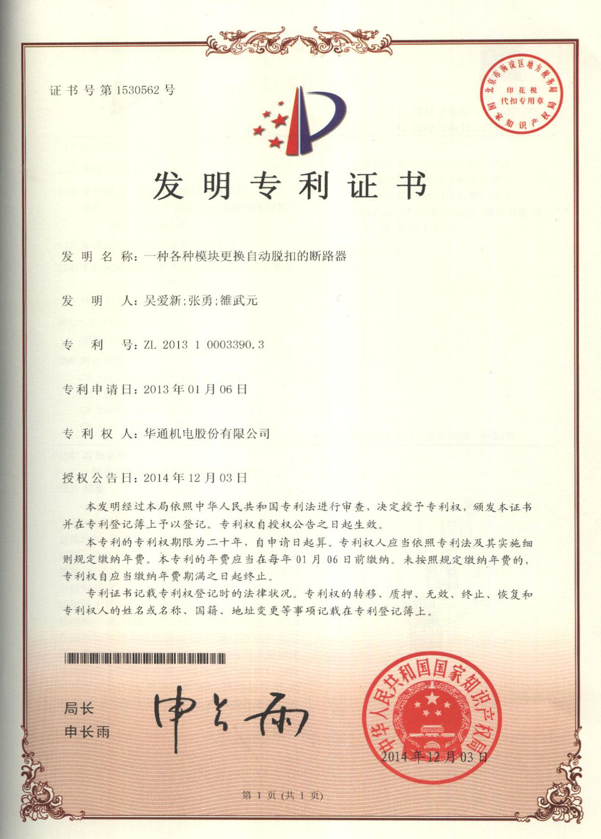 發(fā)明專利:一種模塊更換自動脫扣的斷路器