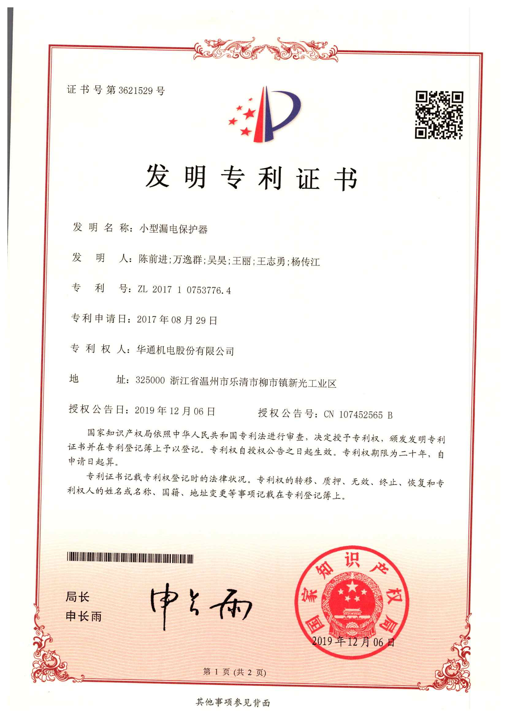 發(fā)明專利:小型漏電保護器