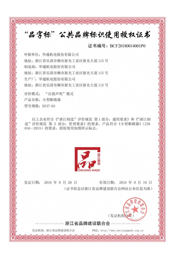 浙江制造認證證書