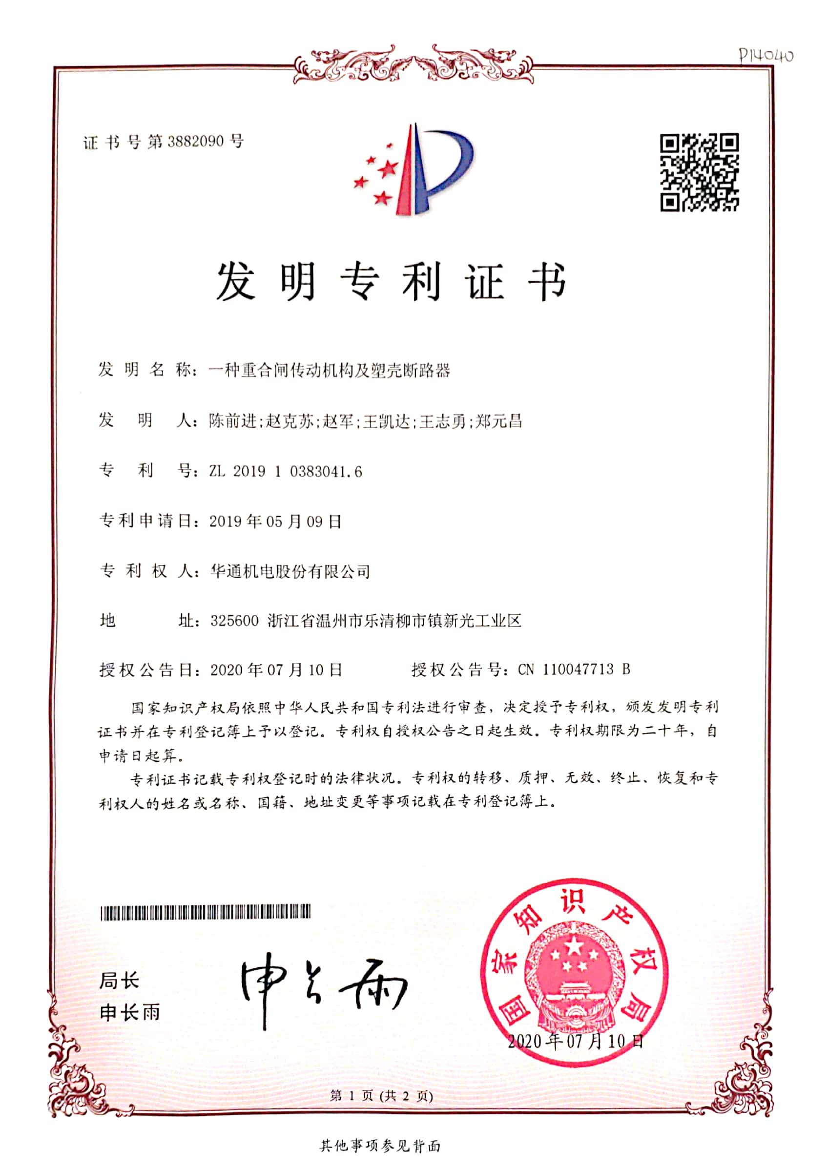 發(fā)明專利:一種重合閘傳動機構(gòu)及塑殼斷路器