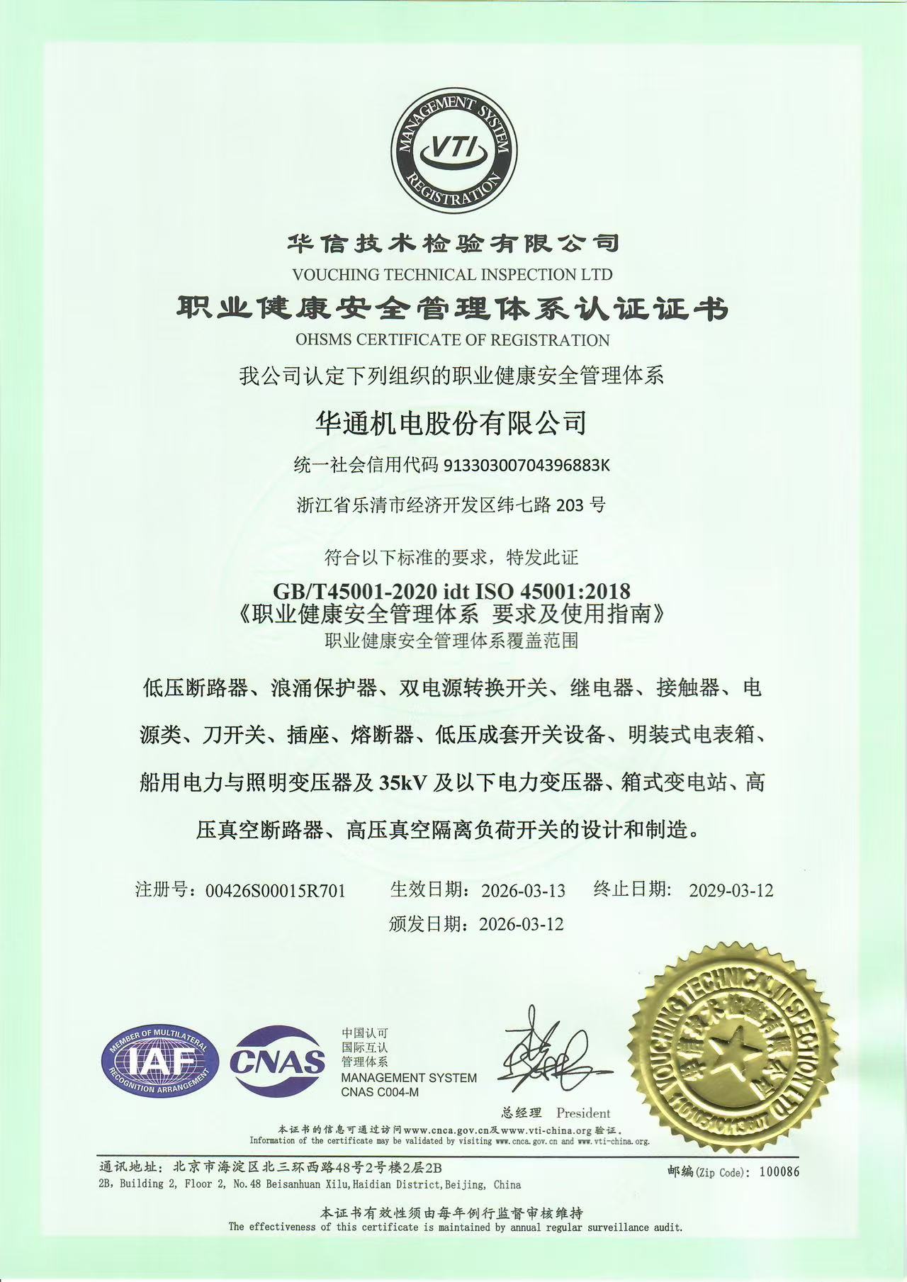 華通機電能源體系證書