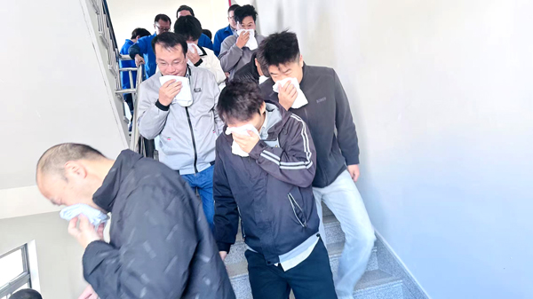 實(shí)戰(zhàn)淬煉,協(xié)同作戰(zhàn)顯效能。模擬六樓突發(fā)火情,警報(bào)拉響后應(yīng)急預(yù)案高效啟動。通訊組精準(zhǔn)通報(bào)、滅火組迅疾撲救、救護(hù)組緊急馳援、疏導(dǎo)組有序引導(dǎo),全員冷靜應(yīng)對,安全撤離至指定區(qū)域,彰顯嚴(yán)密組織力與團(tuán)隊(duì)凝聚力。逃生演練真實(shí)模擬了“警鈴響起來,工作停下來,人員逃出來”的“三來”要求,確保了在突發(fā)情況下能夠?qū)崿F(xiàn)安全、快速、有序的撤離。